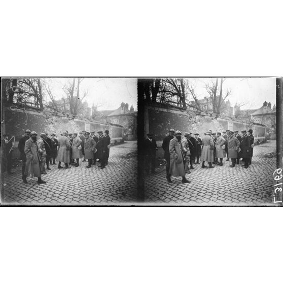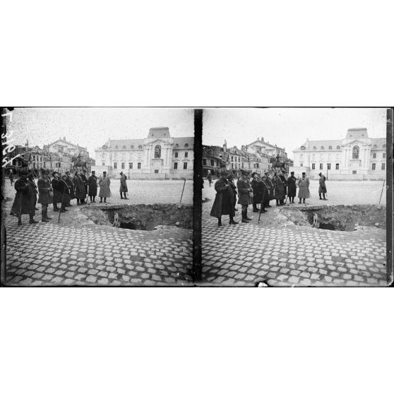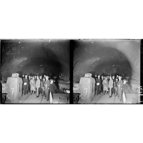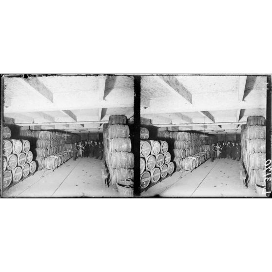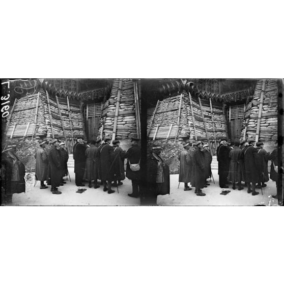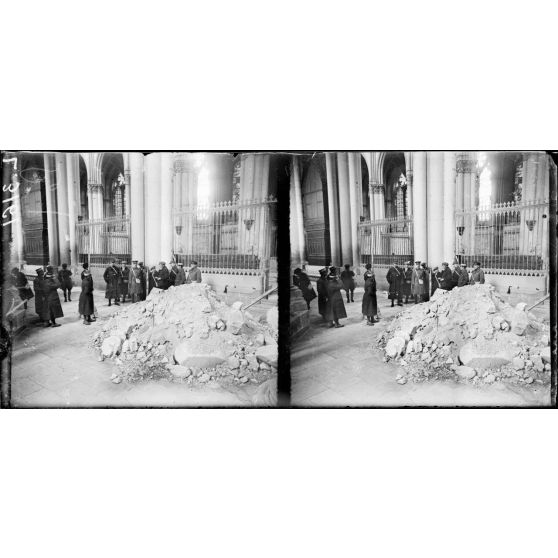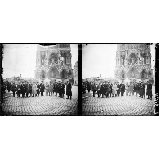 - à Reims, visite d'une mission canadienne ; sur le parvis de la cathédrale, protégée partiellement par des sacs de terre (SPA 64 L 3155/3160/3167), dans la rue (SPA 64 L 3169), à l'intérieur de la cathédrale, les armatures des vitraux brisés lors des bombardements sont posés au sol (SPA 64 L 3156/3159), la mission visite les installations d'un établissement viticole, la maison Clicquot-Ponsardin (SPA 64 L 3170 à 3173) ;