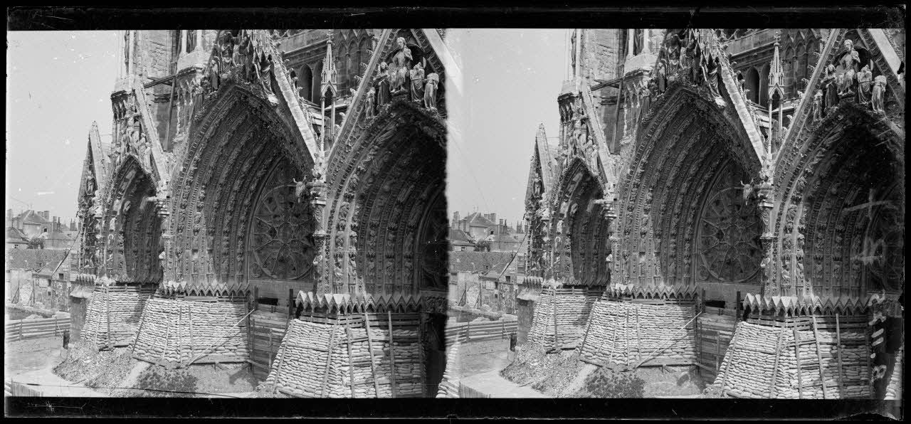 Reims : chevet de la cathédrale, partie abimée par un obus de 210.