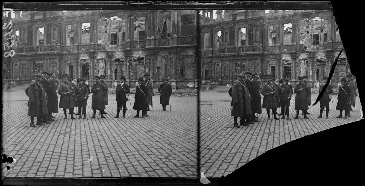 Une délégation canadienne visite la ville de Reims, dévastée par des bombardements et évacuées de ses habitants.