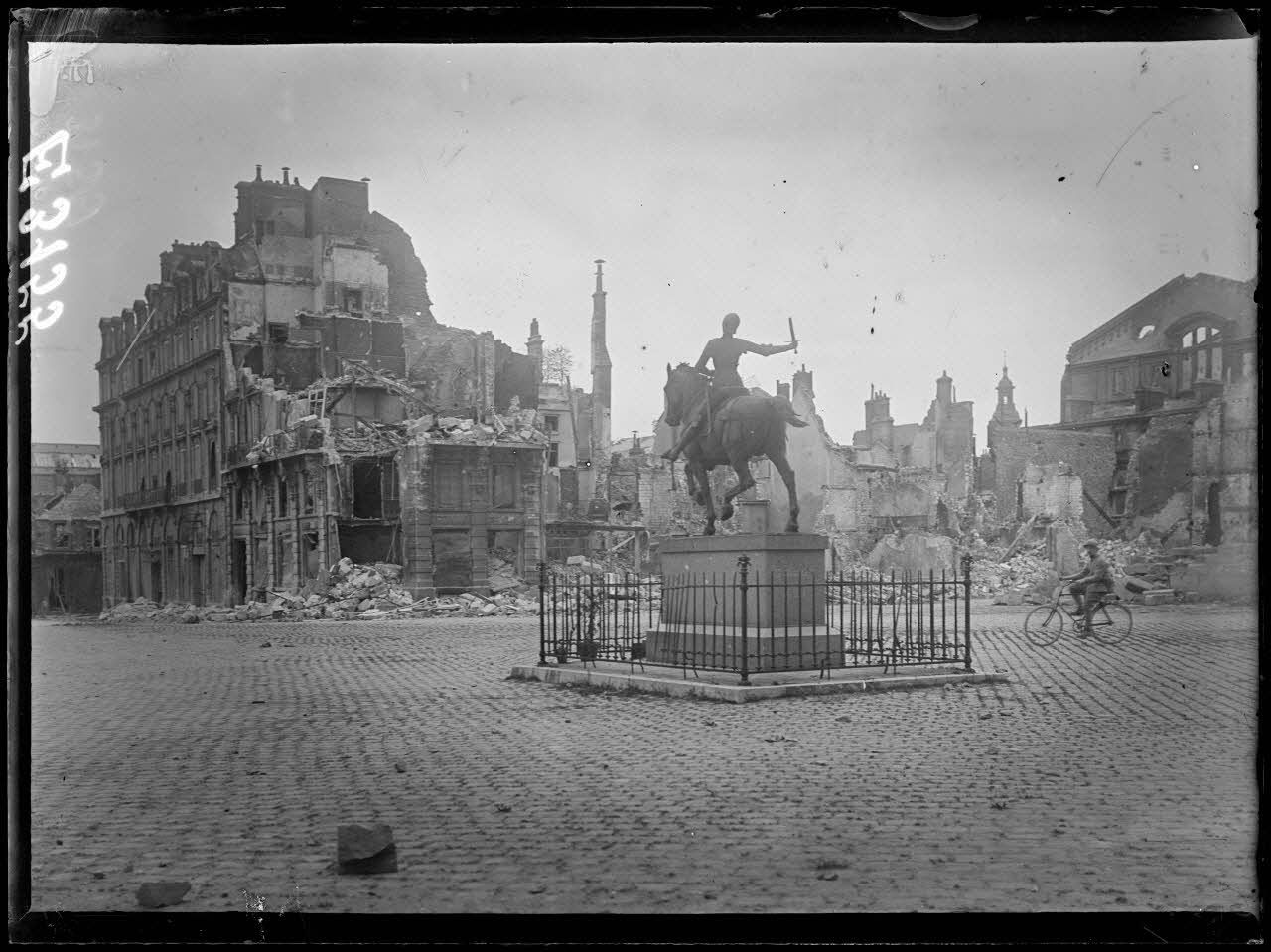 -les ruines de la ville de Reims suite à de violents bombardements ;