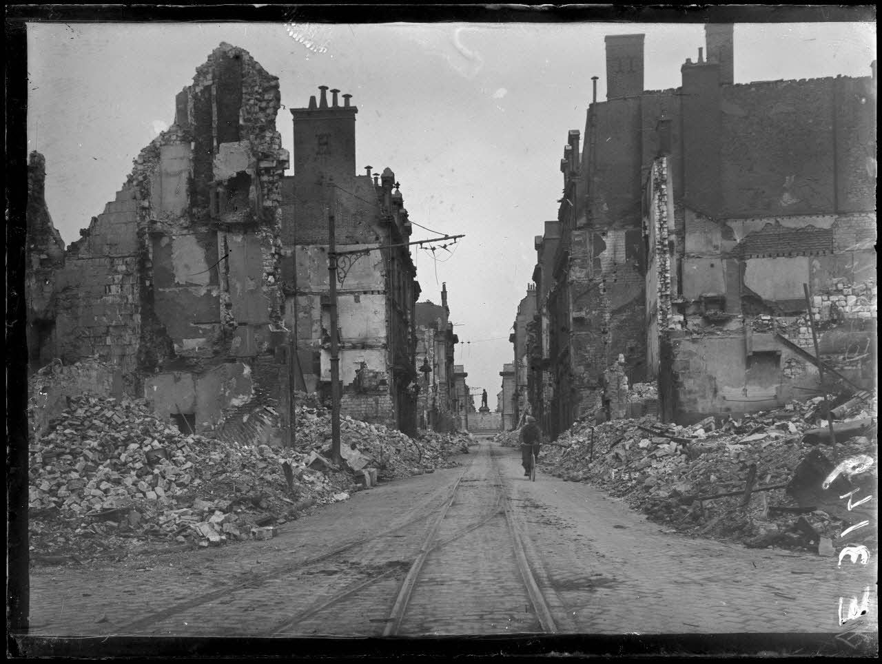 -les ruines de la ville de Reims suite à de violents bombardements ;