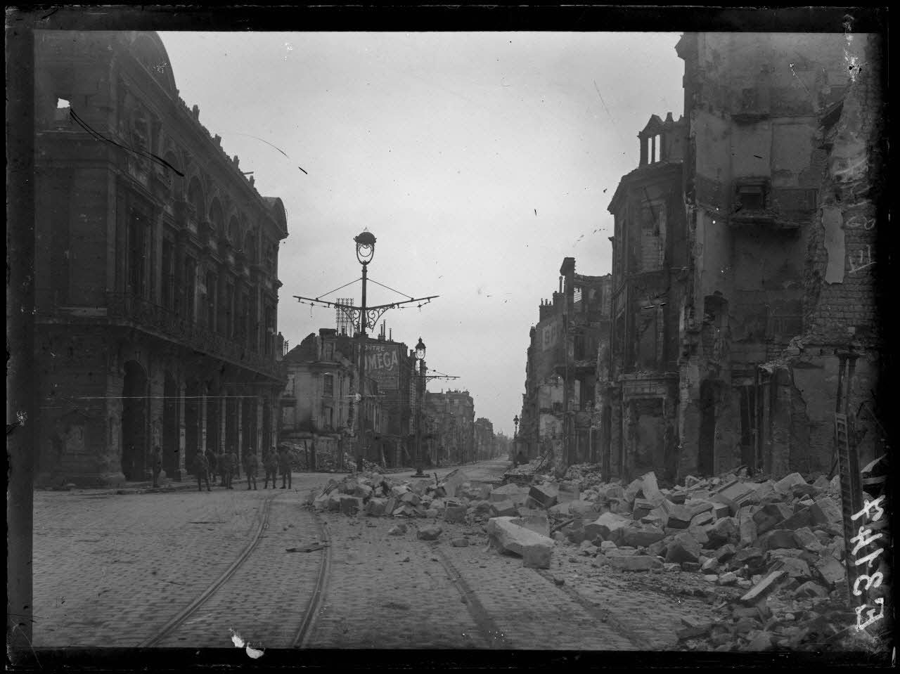 -les ruines de la ville de Reims suite à de violents bombardements ;