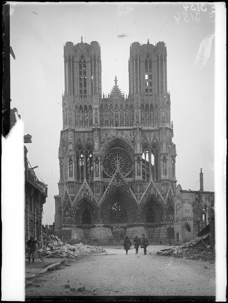 -les ruines de la ville de Reims suite à de violents bombardements ;