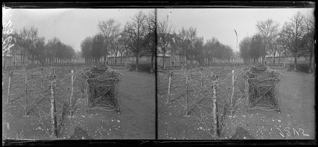 Vidée de sa population par crainte des bombardements et d'une offensive allemande majeure sur la Marne, la ville de Reims est organisée en plusieurs réseaux de défense. Dans les rues et les boulevards principaux, des réseaux de fils de fer barbelés ont été installés pour empêcher toute prise de la ville par l'ennemi. Les rues Brulart et d'Oseille sont parcourues par les piquets maintenant le barbelé. Le boulevard Victor Hugo est également défendu avec l'aide de réseaux de barbelés et de chevaux de frise.