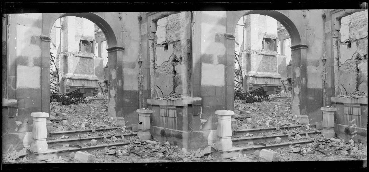 Reims : chevet de la cathédrale, partie abimée par un obus de 210.
