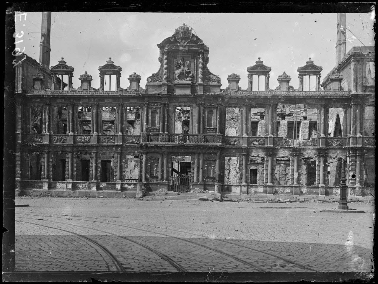 Quelques photographies montrent l'état des lieux de Reims après les bombardements : les ruines de la cathédrale, de la gare, de l'église Saint-André, de l'hôtel de ville et des rues.