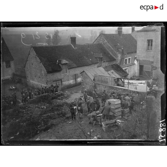 Région Est de Reims, les cantonnements d'un régiment du génie et de tirailleurs, novembre 1917.
