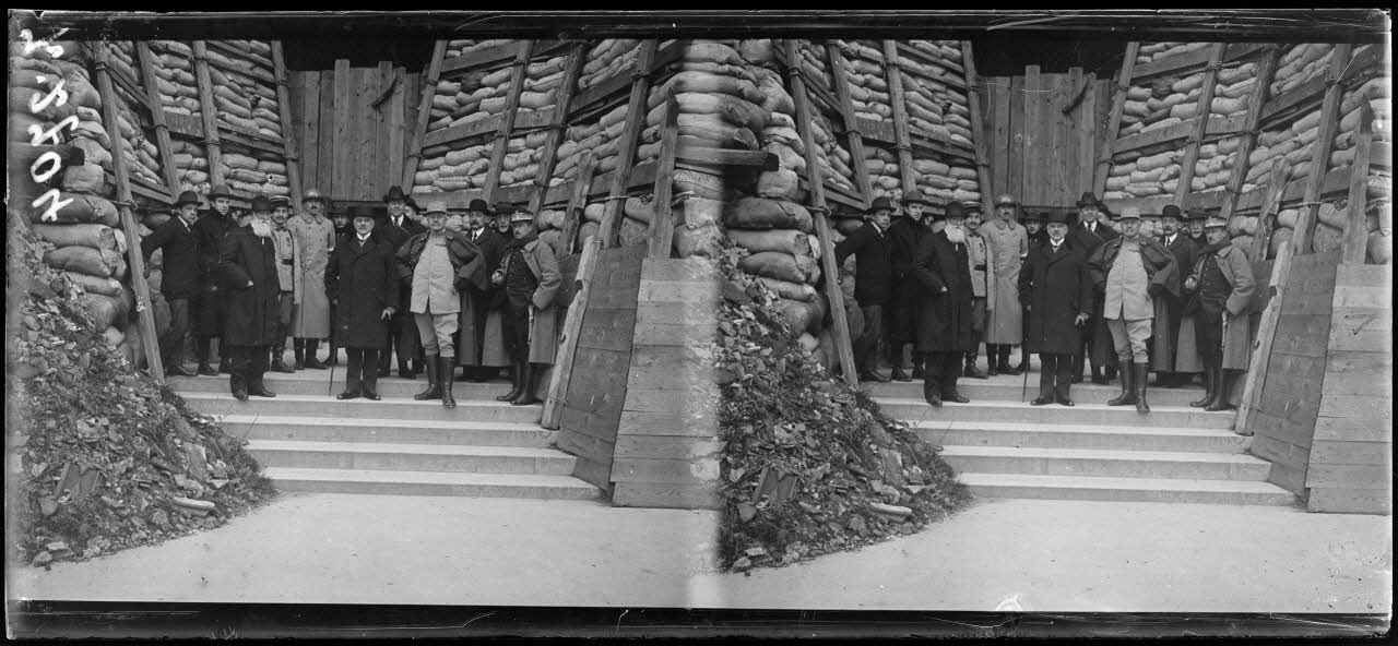 Reims (Marne). Mission des diplomates américains devant la cathédrale.