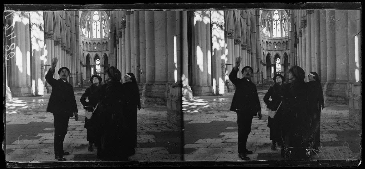 Reims, mission américaine de Miss Holt. Dans la cathédrale. [légende d'origine]