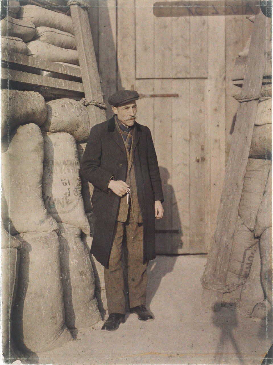 Le gardien de la cathédrale est visible sur le film 14.18 A 203 au TC 00:09:40, se dirigeant vers les deux statues visibles sur les autochromes A 11 226 et 11227.