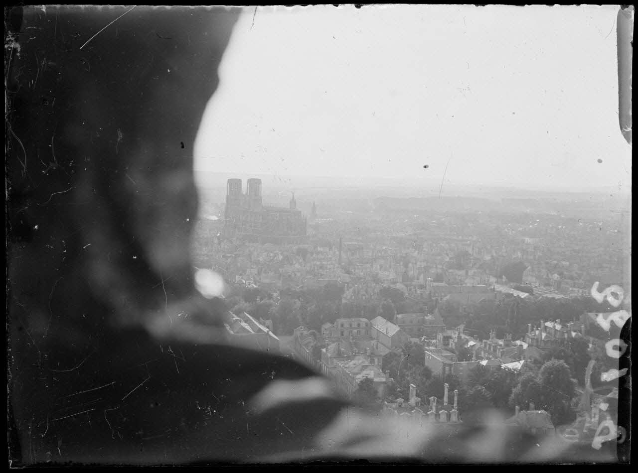 Reims : panorama sur la ville vers la cathédrale pris d’un observatoire d’artillerie (secret). [légende d'origine]