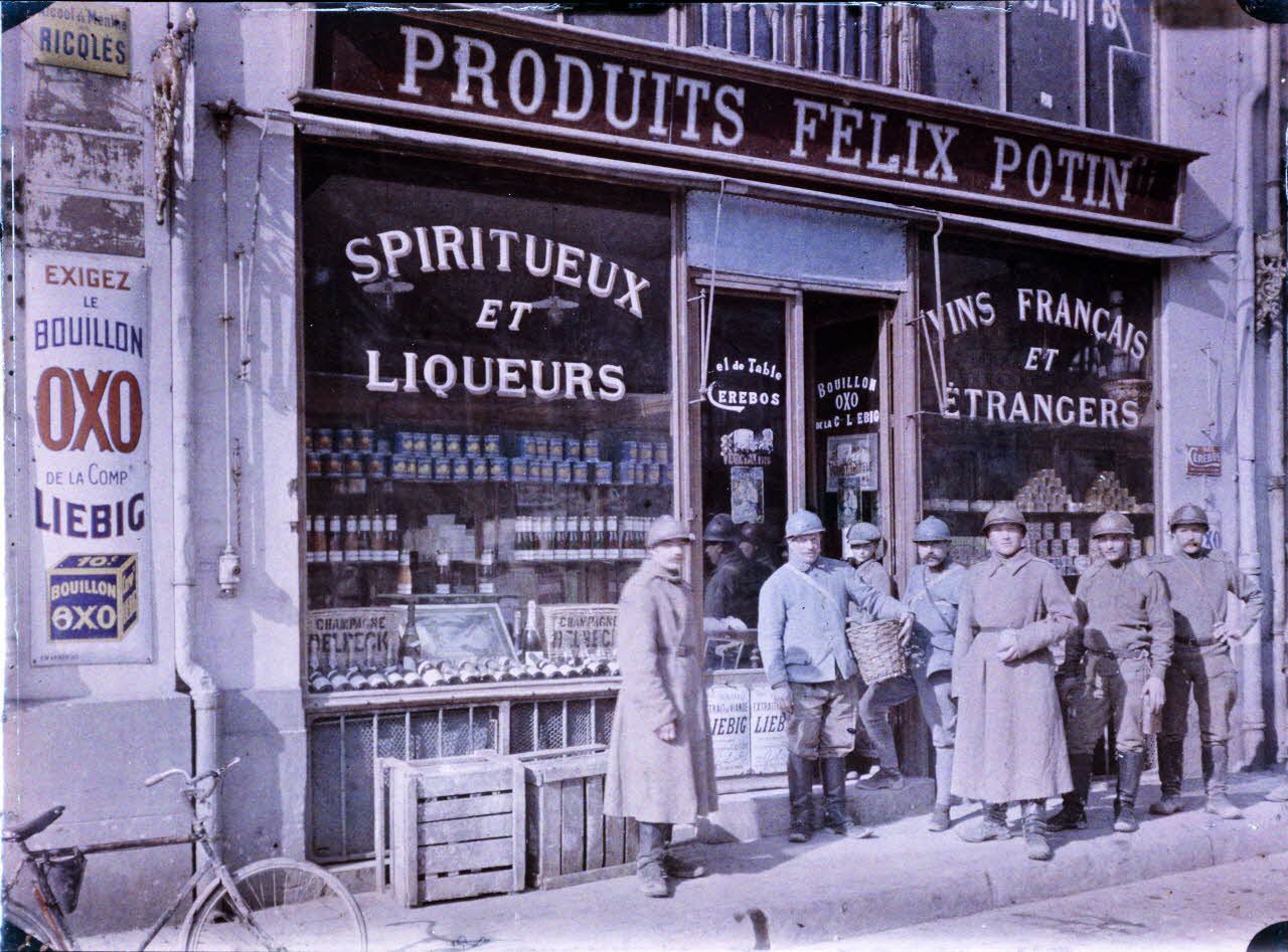 Reims. Place des marchés. Epicerie avec Russes [légende d'origine]