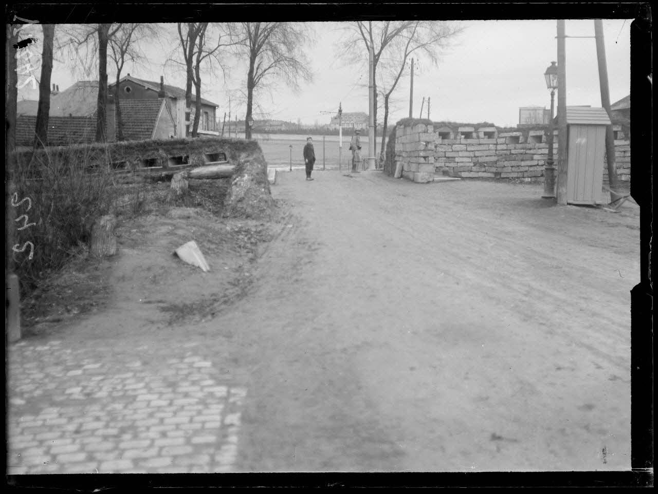 L'entrée d'un boyau débute à la Ferme de la Jouissance, située à l'est de Reims, près du fort de la Pompelle. Près du pont d'Huon, des barricades protègent l'accès de la ville (V 242).