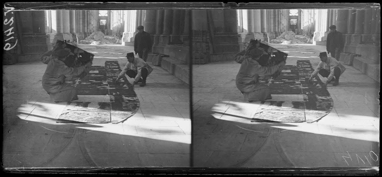 Reims, récupération des vitraux de la cathédrale, rassemblement des morceaux. [légende d'origine]