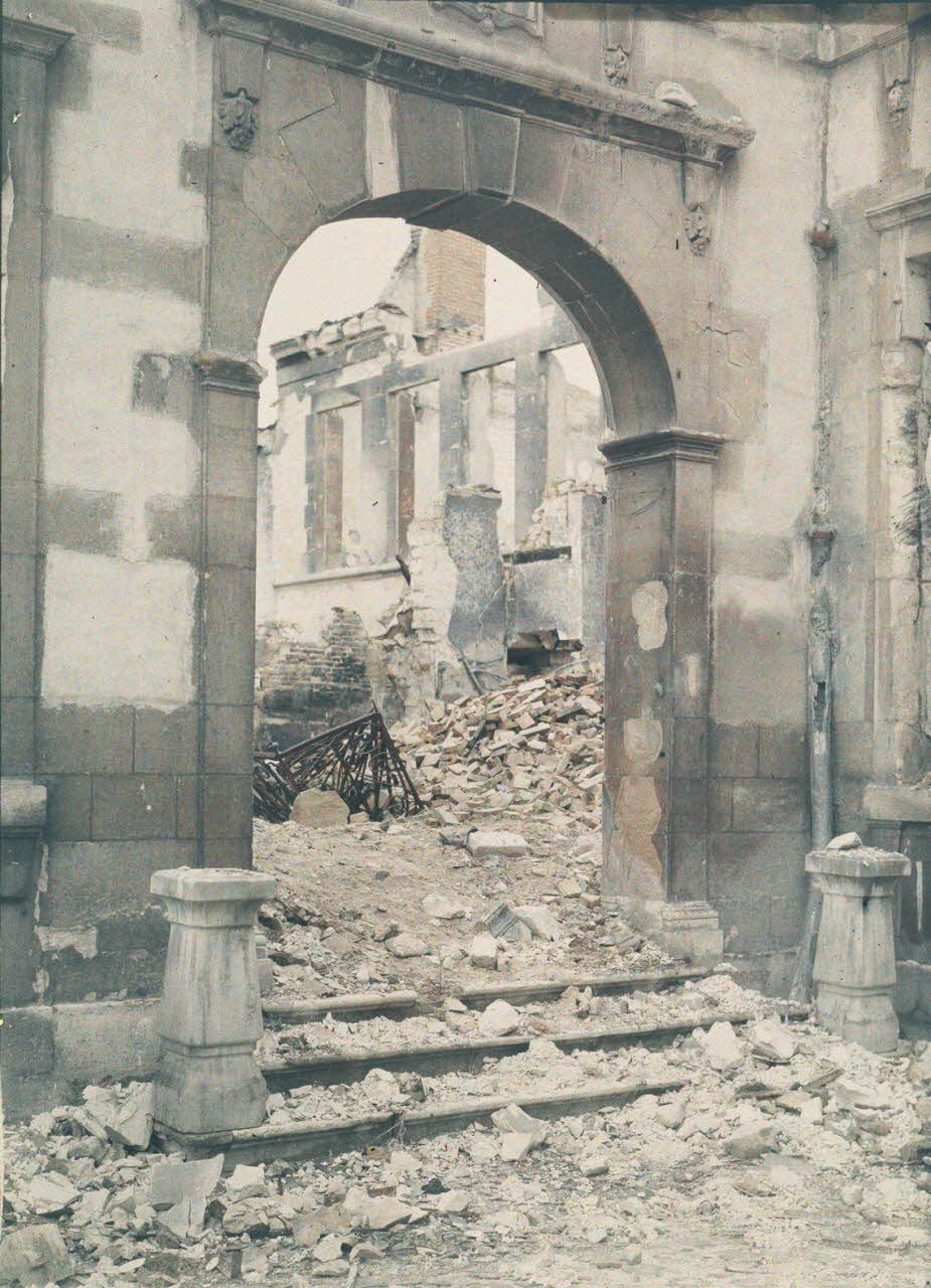 - les ruines et destructions occasionnées par la guerre à Verdun, Reims, Arras ou ailleurs : maisons, églises, cathédrales, lieux symboliques des grandes villes de province en ruines ;