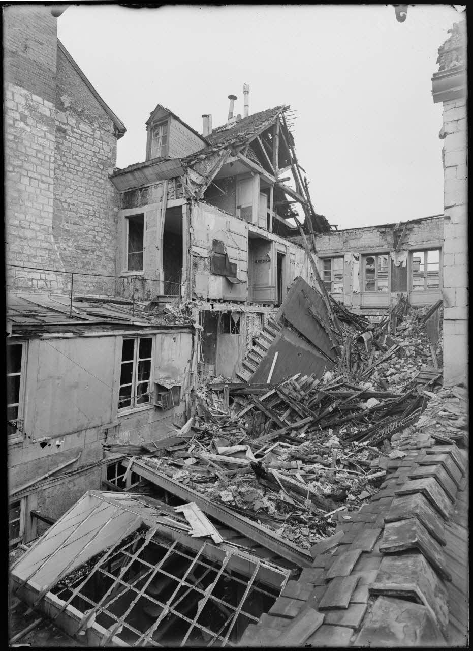 Soissons. Ruines de la rue des Graviers prise à travers une brêche.