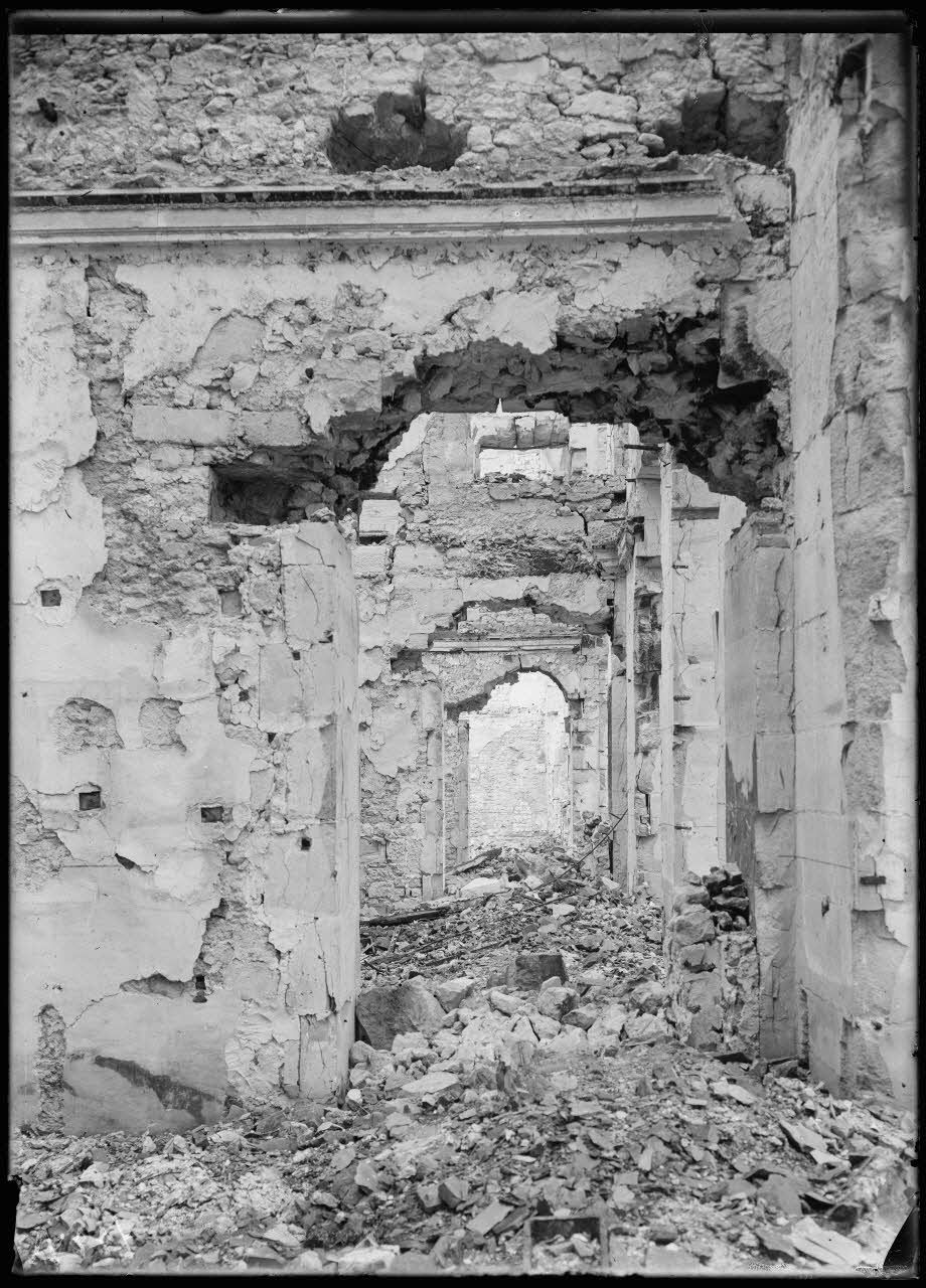 Reims, palais archiépiscopal, la salle du Tau, un trou d'obus.