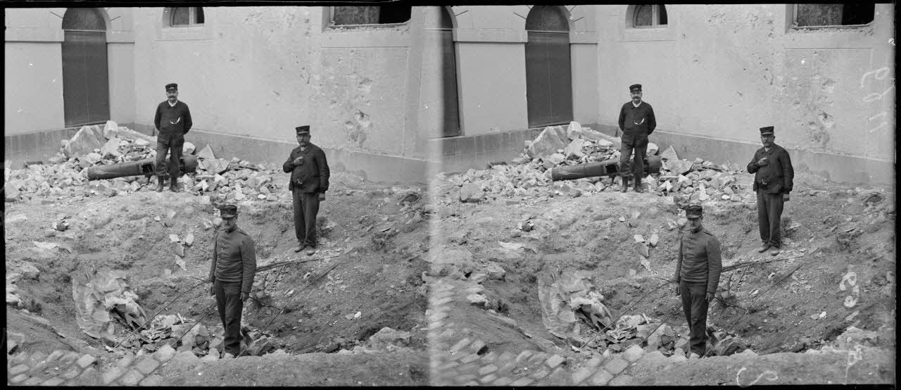 Reims, trou d’obus de 210 dans la cour de l’école de musique, rue des Elus. [légende d’origine]