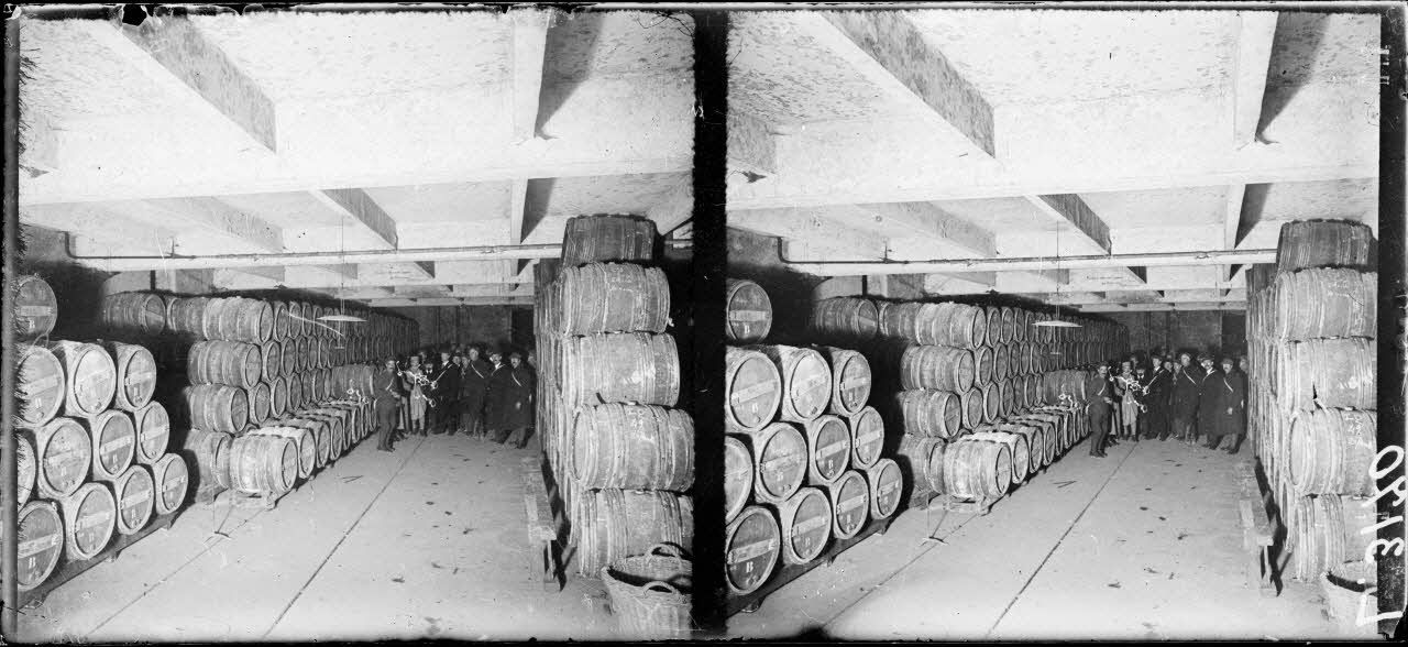 Reims. Visite d'une mission canadienne. La mission visite les caves de la Maison Cliquot-Ponsardin. [légende d'origine]