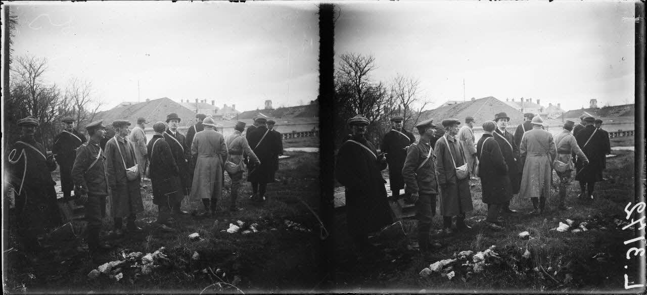 - à Reims, visite d'une mission canadienne ; sur le parvis de la cathédrale, protégée partiellement par des sacs de terre (SPA 64 L 3155/3160/3167), dans la rue (SPA 64 L 3169), à l'intérieur de la cathédrale, les armatures des vitraux brisés lors des bombardements sont posés au sol (SPA 64 L 3156/3159), la mission visite les installations d'un établissement viticole, la maison Clicquot-Ponsardin (SPA 64 L 3170 à 3173) ;