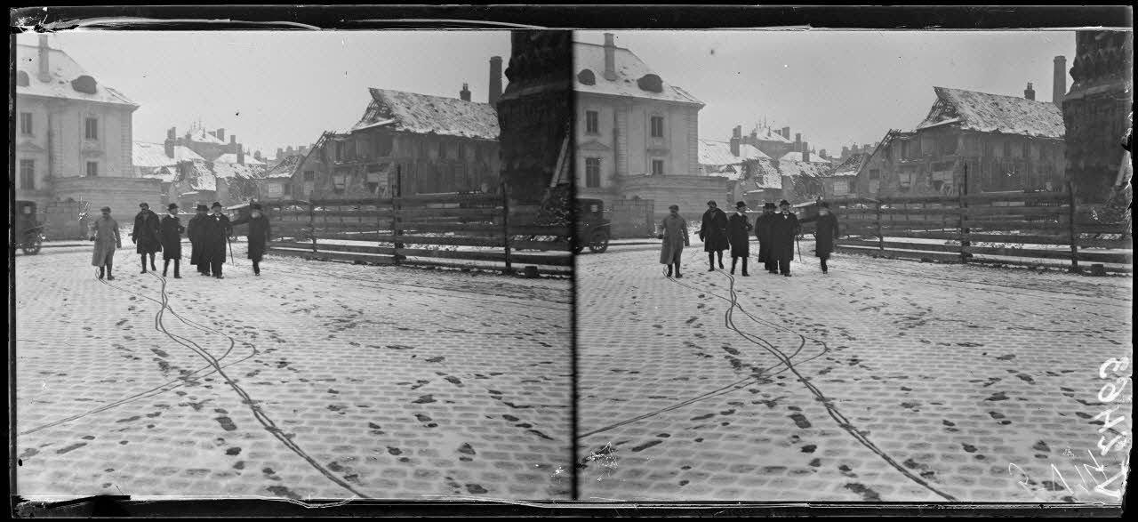 Reims, M. Lafferre accompagné de M. Langlet parcourant Reims.