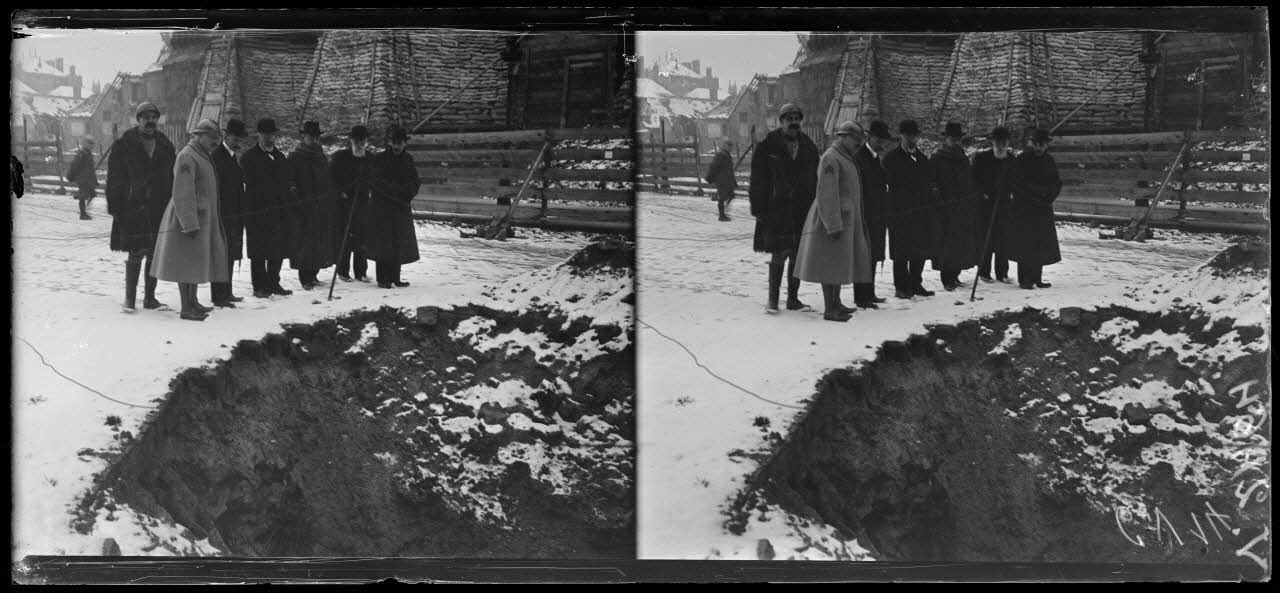 - Devant la cathédrale de Reims (04/03/1918, V 2482), M. Lafferre découvre la cathédrale et son chantier de protection et de conservation dirigé par l'architecte M. Sainsaulieu (V 2477 et V 2478). M. Luçon, cardinal de Reims, accompagne le ministre dans les ruines de la salle de Tau (V 2475). Paul Léon, directeur du service de l'architecture, accompagne M. Lafferre à la fin de sa visite de la cathédrale (V 2481 et V 2482).