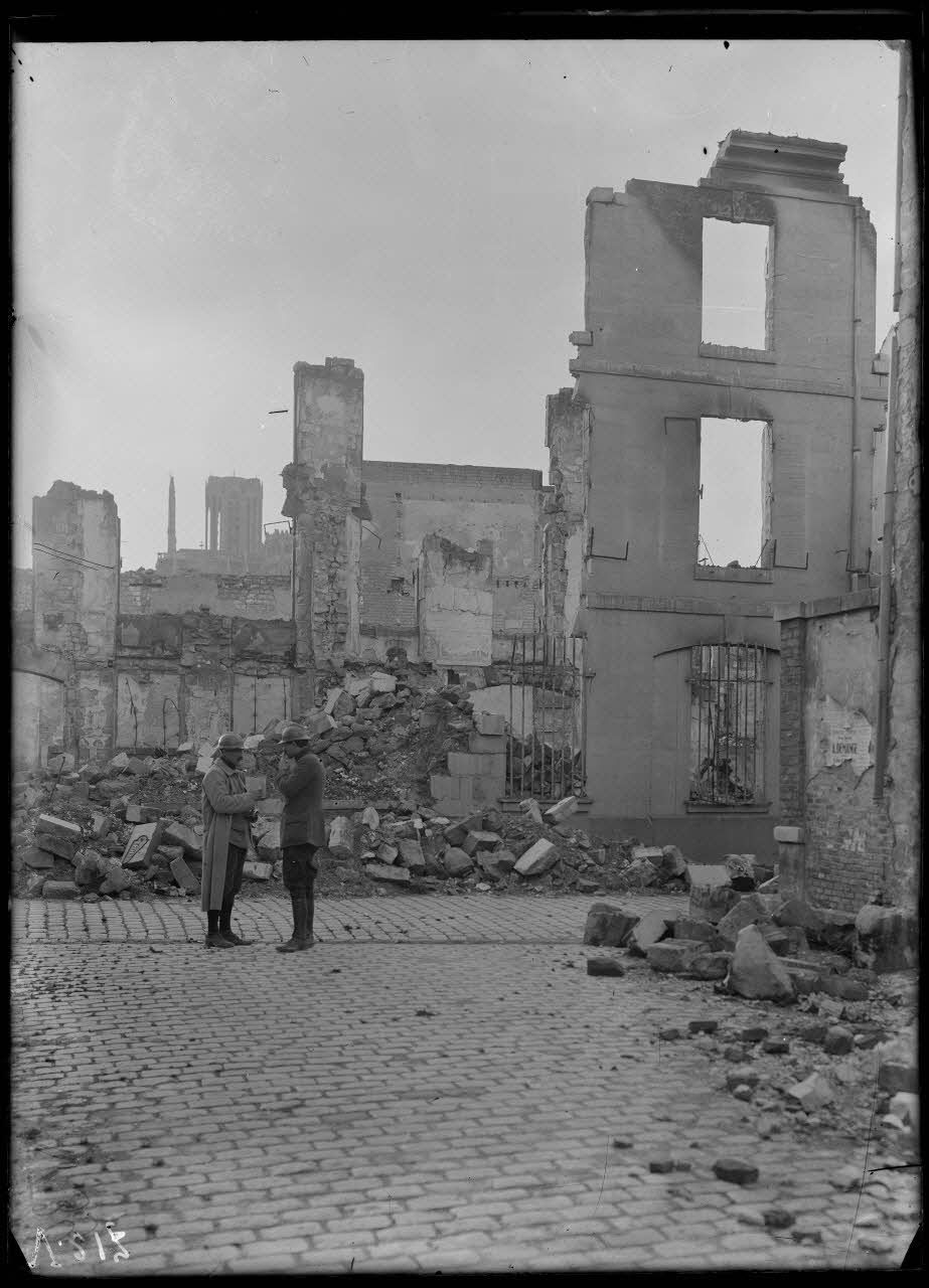 Reims, vue prise de la rue de Maçon. Ruines. [légende d'origine]