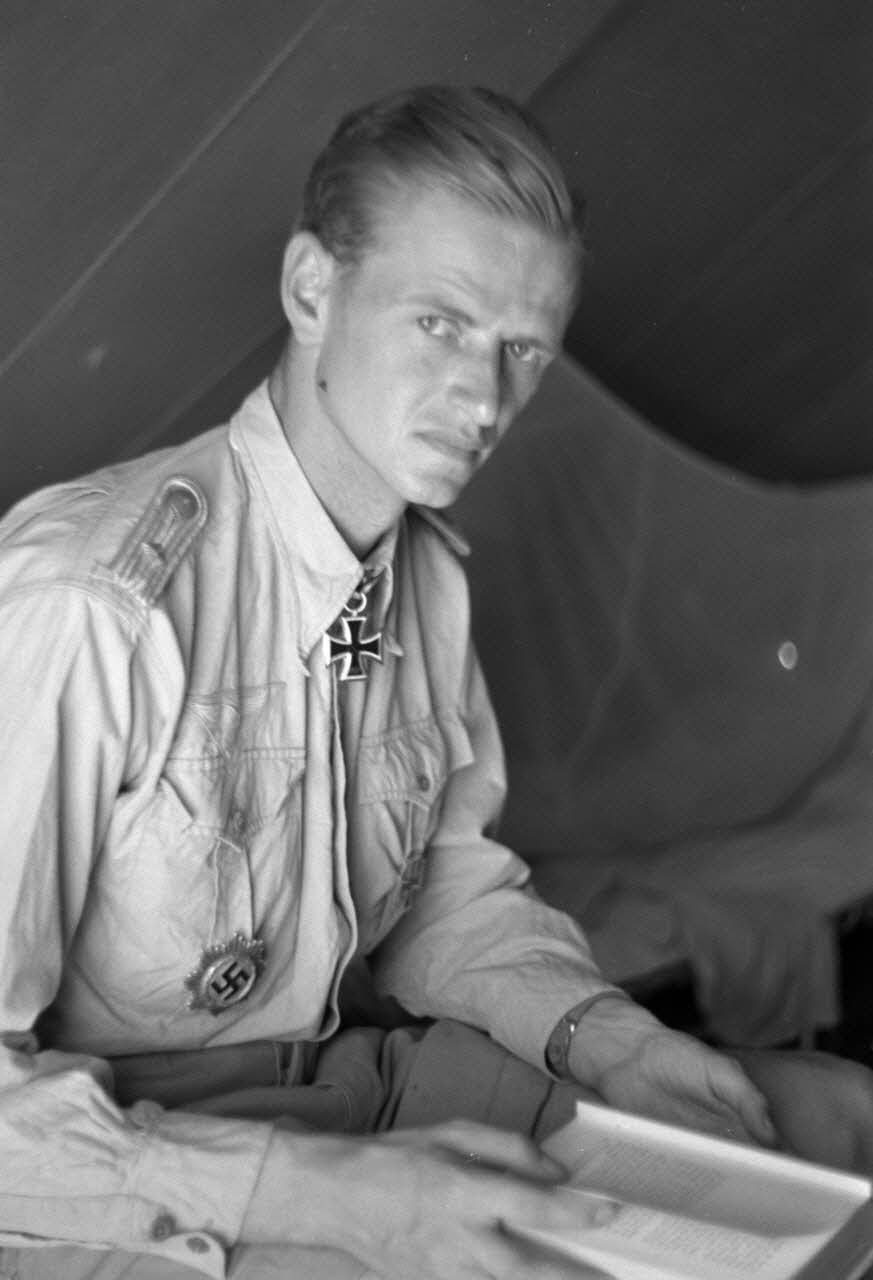 Remise de la croix de chevalier de la croix de fer (Ritterkreuz) à l'Oberleutnant Hans von Bargen pilote de Stukageschwader 3.