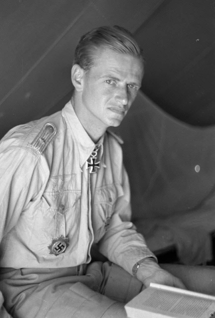 Remise de la croix de chevalier de la croix de fer (Ritterkreuz) à l'Oberleutnant Hans von Bargen pilote de Stukageschwader 3.
