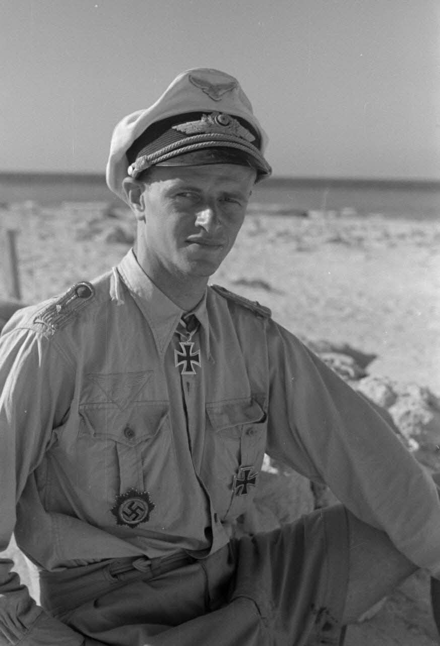 Remise de la croix de chevalier de la croix de fer (Ritterkreuz) à l'Oberleutnant Hans von Bargen pilote de Stukageschwader 3.