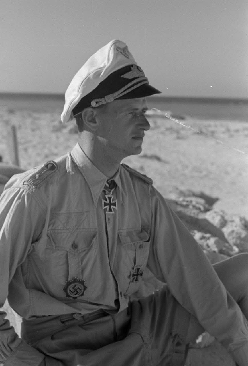 Remise de la croix de chevalier de la croix de fer (Ritterkreuz) à l'Oberleutnant Hans von Bargen pilote de Stukageschwader 3.