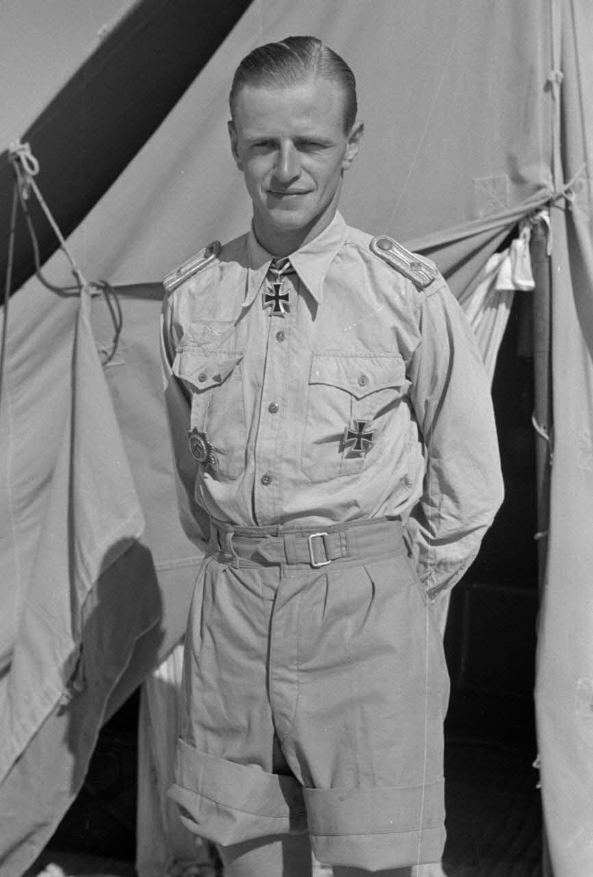 Remise de la croix de chevalier de la croix de fer (Ritterkreuz) à l'Oberleutnant Hans von Bargen pilote de Stukageschwader 3.