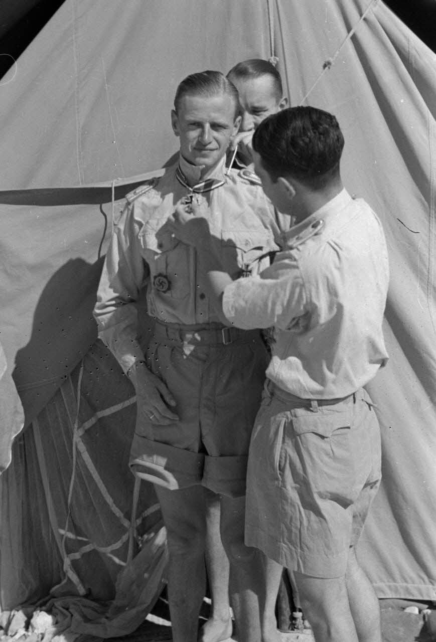 Remise de la croix de chevalier de la croix de fer (Ritterkreuz) à l'Oberleutnant Hans von Bargen pilote de Stukageschwader 3.