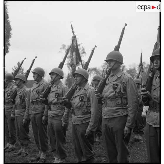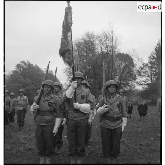 L'étendard du 2e RD et sa garde d'honneur lors d'une prise d'armes le 5 novembre 1944.
