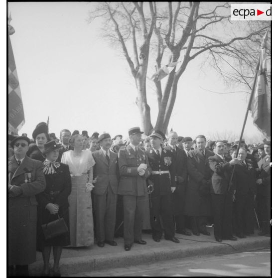 Les autorités civiles et militaires et les Arlésiens assistent au défilé des troupes après la cérémonie.