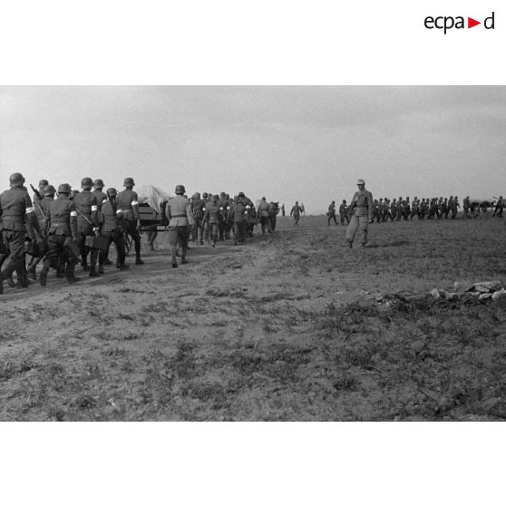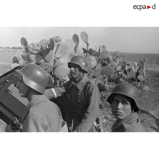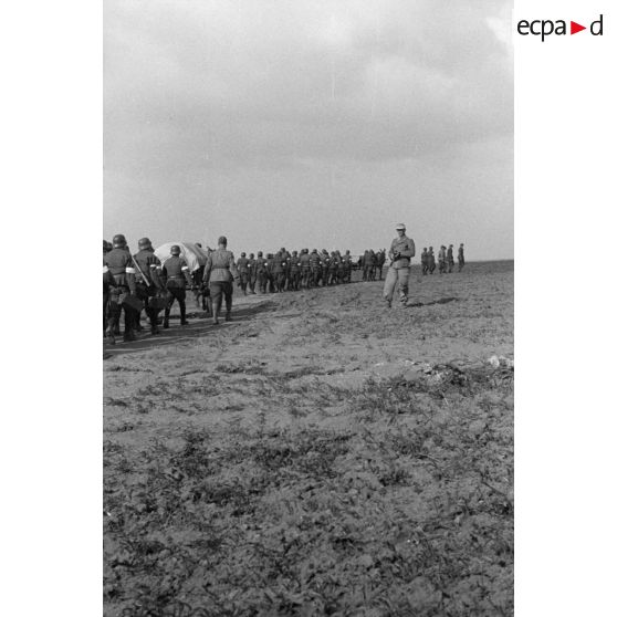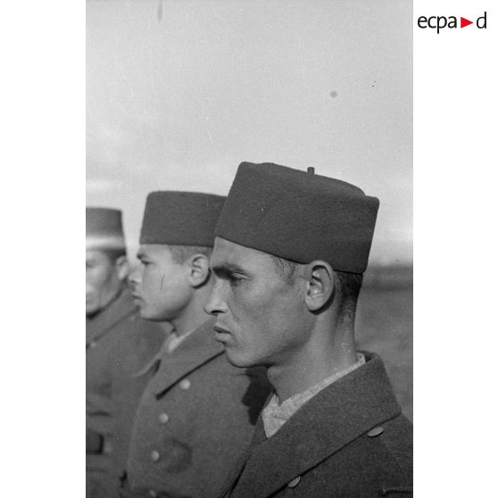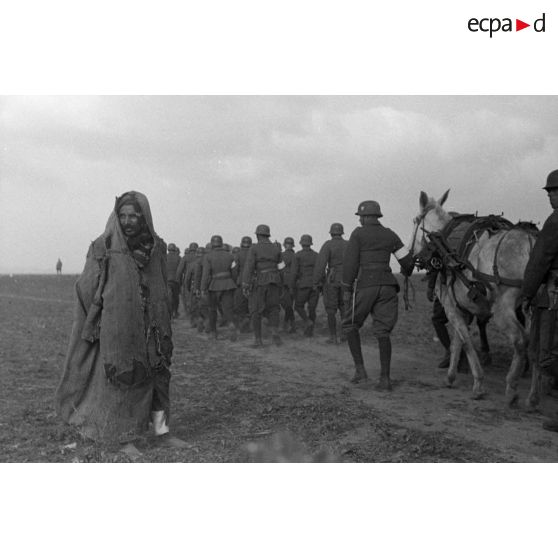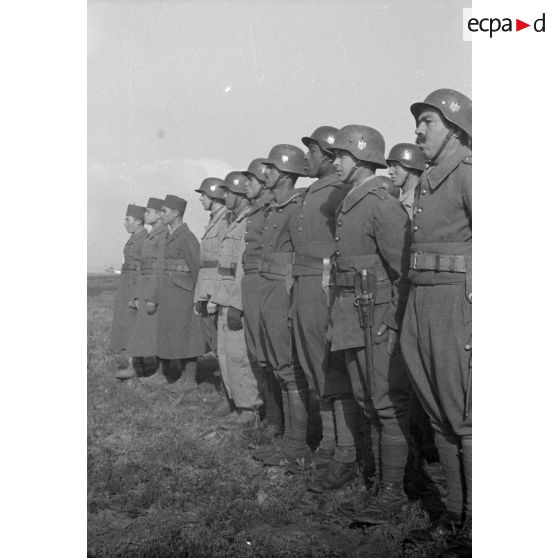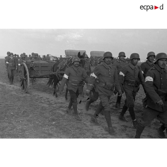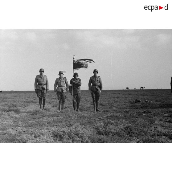 Une unité de volontaires arabes conduite par un Unteroffizier du Sonderverband-287 ou 288, défile en colonne.