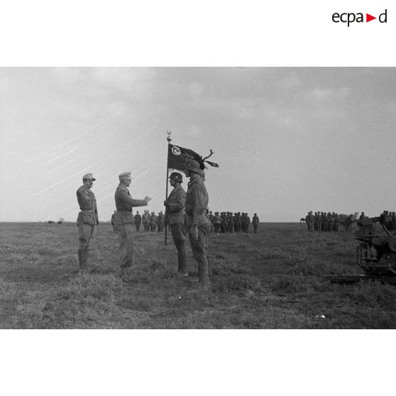 Remise du fanion à une unité de volontaires tunisiens.