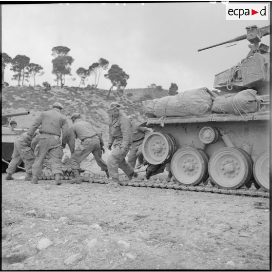 Remplacement de la chenille d'un M24 Chaffee (détail).