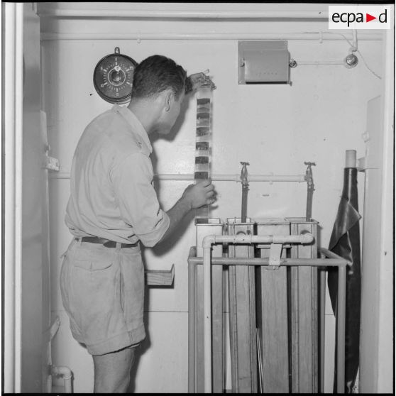 Laboratoire photo de la 3e compagnie de hauts parleurs et tracts (CHPT) à la ferme Cautret, près d'Orléansville.