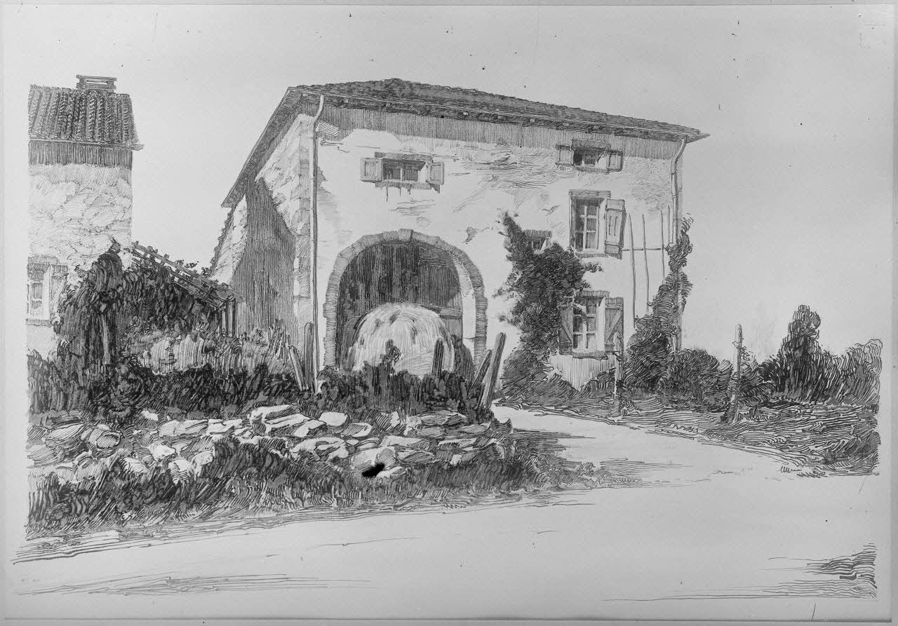 Reproduction de documents pour les Beaux-Arts. / Paris. Galerie de la rue de la Ville-l'Evêque. Concours pour la reconstruction d'habitations rurales dans les départements envahis. Ferme à Girecourt (Vosges). [légende d’origine]