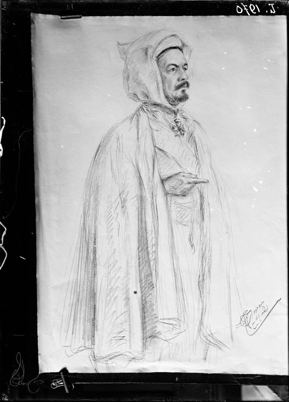 Reproduction de portraits de la Mission Musulmane par Noël Dorville. Si Kaddour Ben Gabrit. Chef de la mission. [légende d'origine]