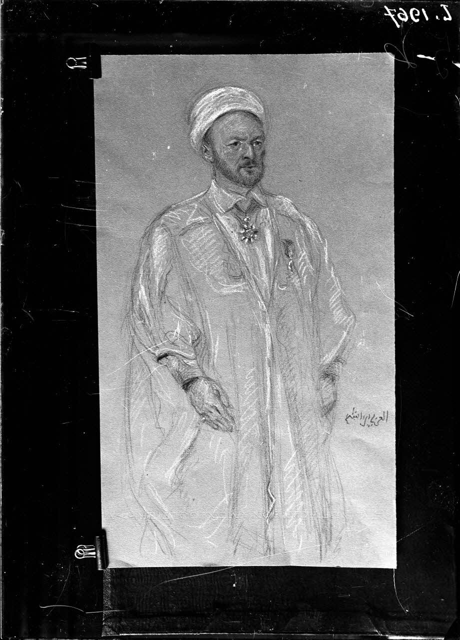 Reproduction de portraits de la Mission Musulmane par Noël Dorville. Si Ahmed Skiredj. Délégué du Maroc.