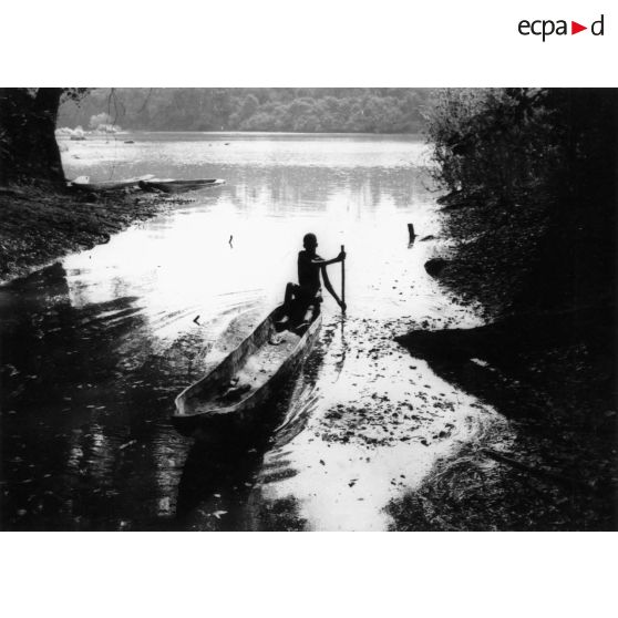 République de Côte d'Ivoire, 1965. Pirogue sur la rivière Bandama.
