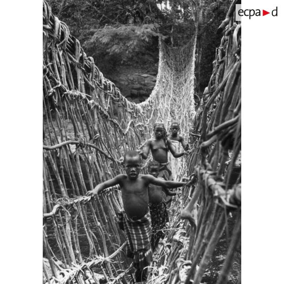 République de Côte d'Ivoire, Korhogo, 1962. Pont de lianes.