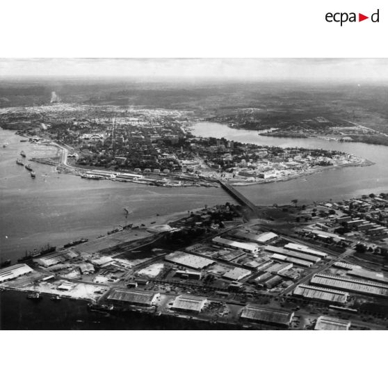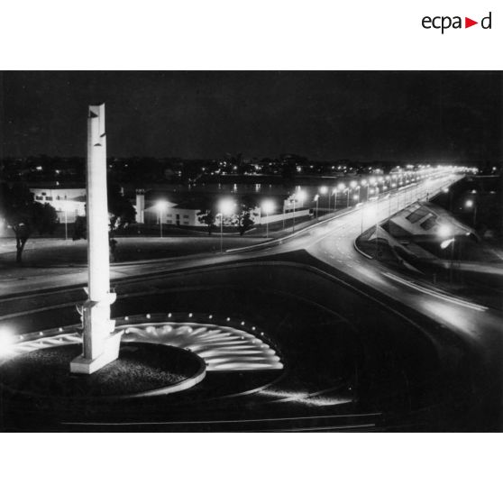 République de Côte d'Ivoire, Abidjan, 1958. Le pont Houphouët-Boigny et le monument à la Gloire de la Côte d'Ivoire, place de la République.