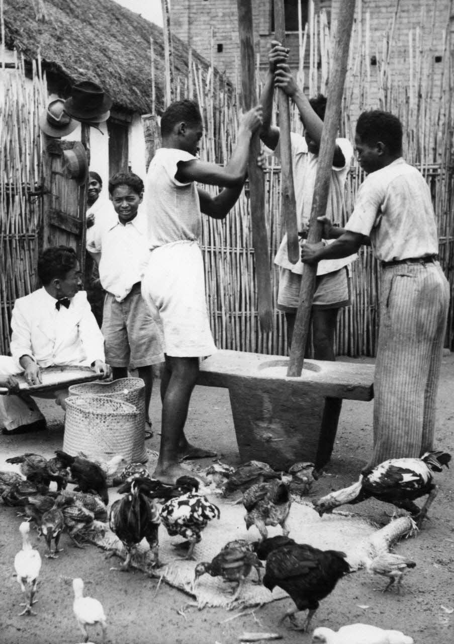 République malgache, 1946. Le pilage du riz.