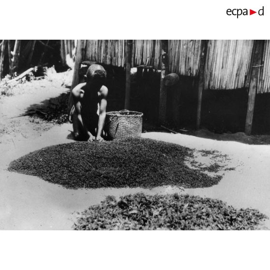République malgache. Séchage des clous de girofle.