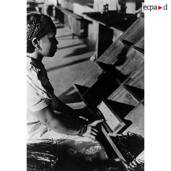 République malgache, 1952. Mise en boites des gousses de vanille.