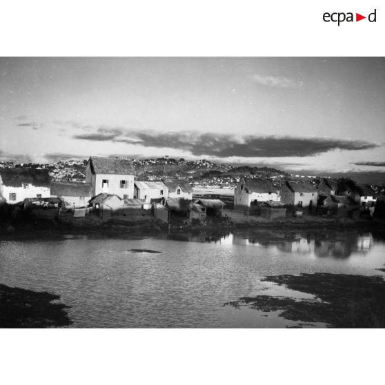 République malgache, 1957. Village aux environs de Tananarive.