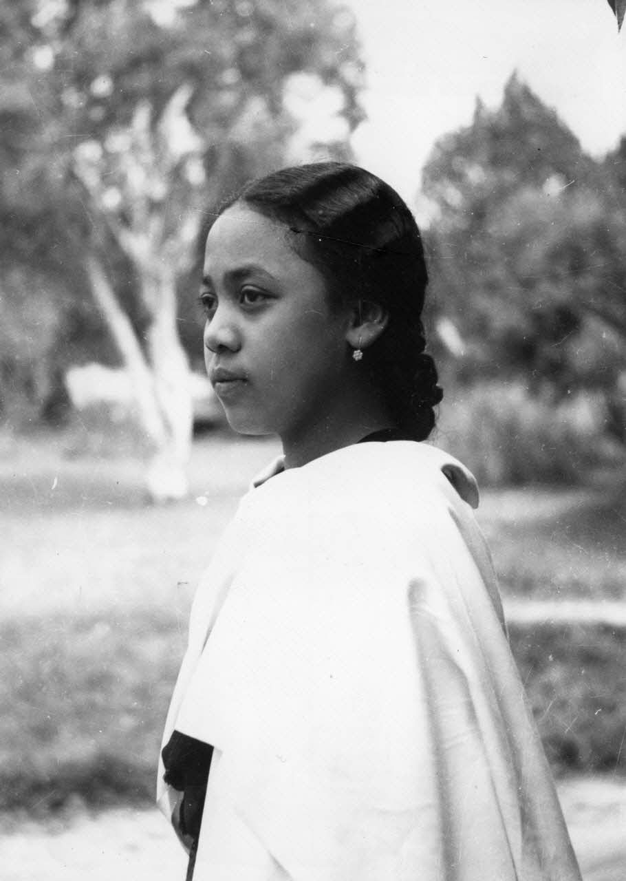 République malgache, Tananarive, 1946. Jeune fille Hova au lamba.